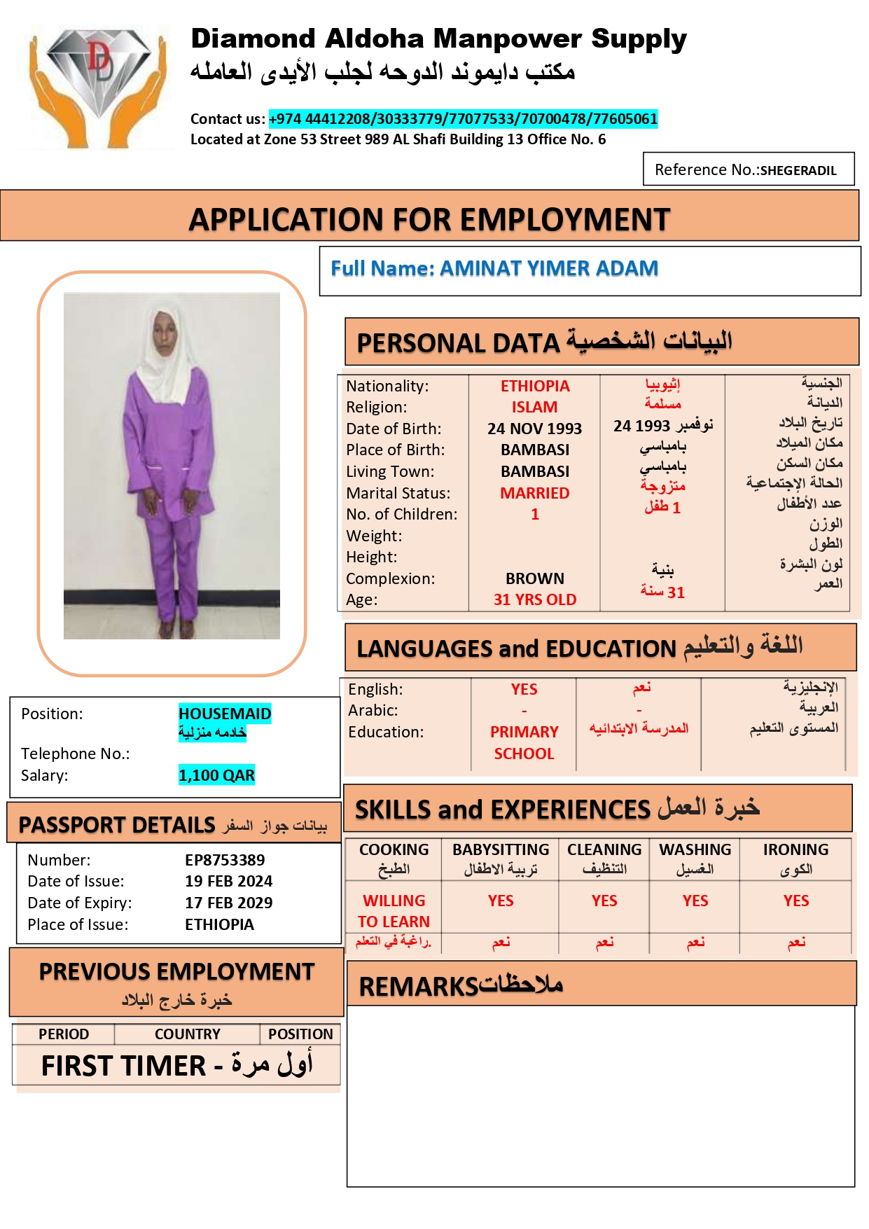 AMINAT ADAM Domestic Worker – ETHIOPIA