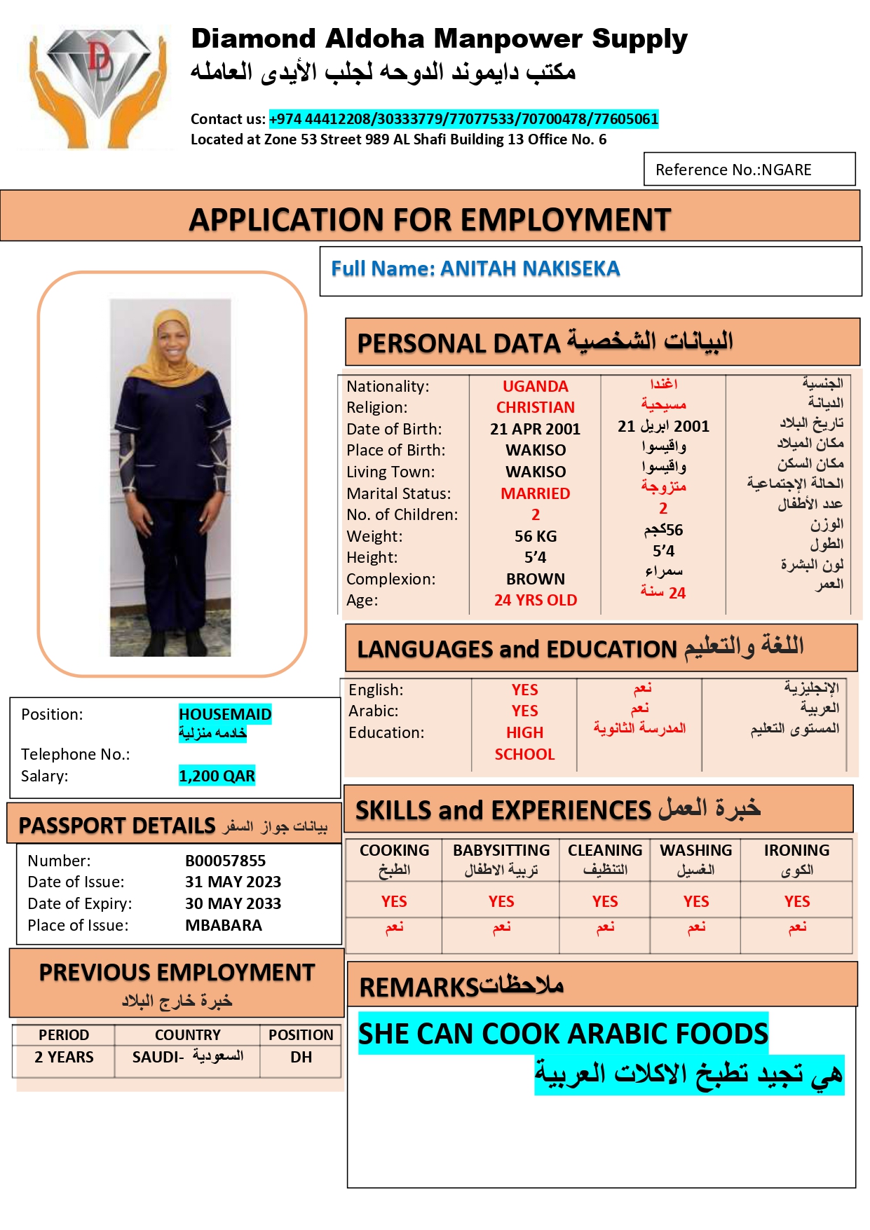 ANITA NAKISEKA Domestic Worker – UGANDA