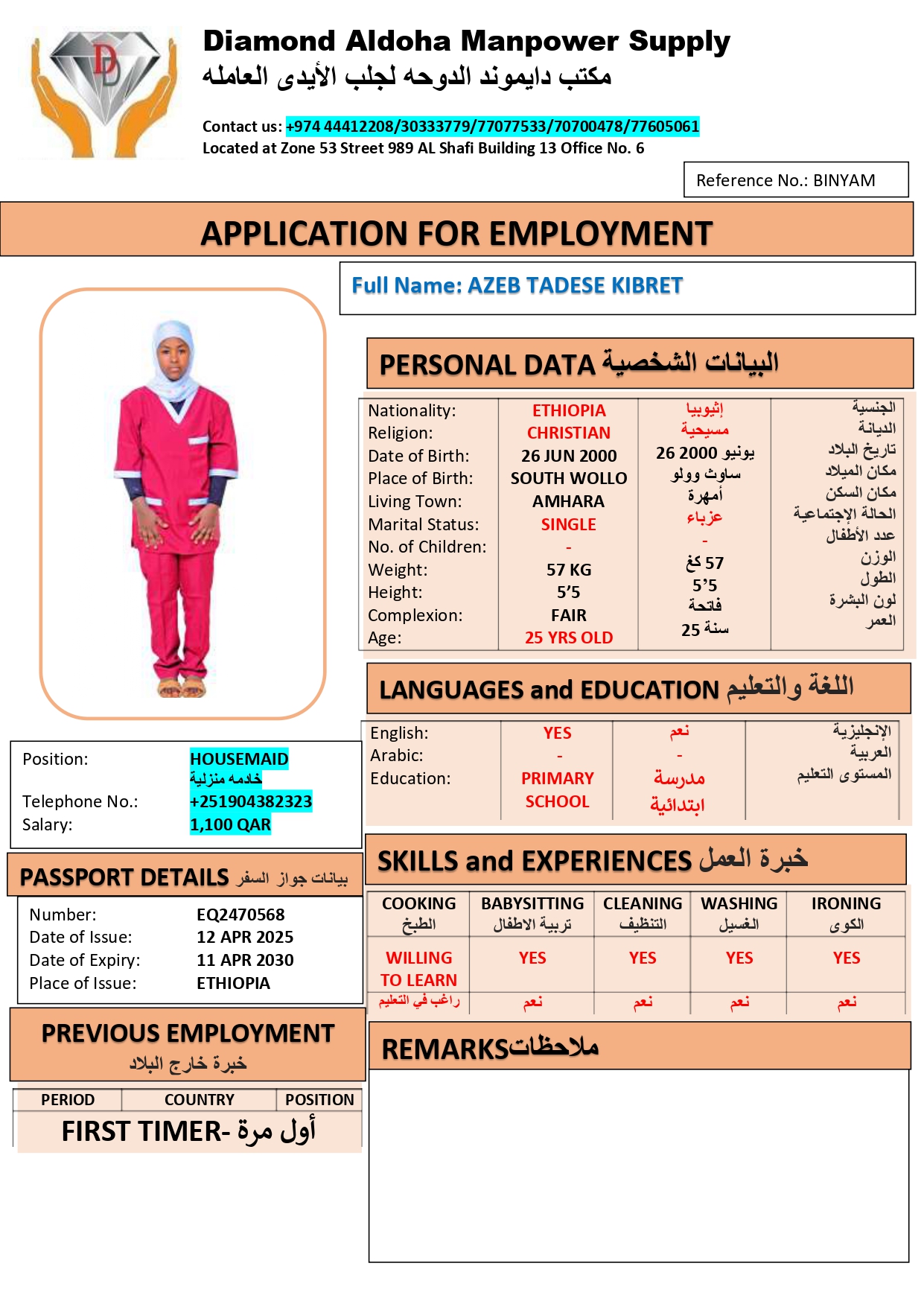 AZEB TADESE KIBRETDomestic worker – Ethiopia