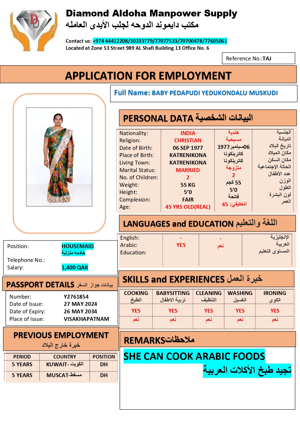 / BABY MUSKUDI Domestic Worker – INDIA