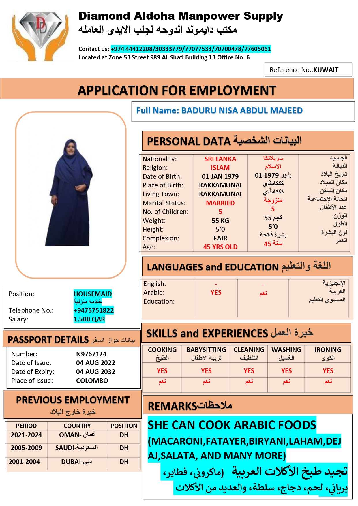 BADURU MAJEED Domestic Worker – SRI LANKA