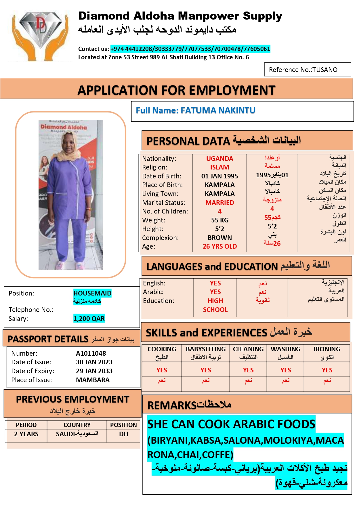 FATUMA NAKINTU Domestic Worker – UGANDA