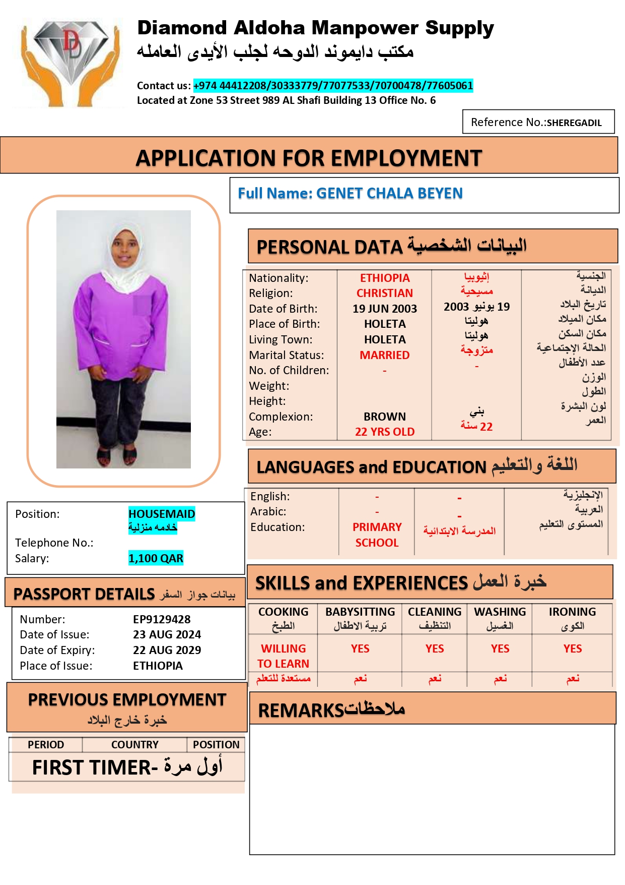 GENET BEYEN Domestic Worker – ETHIOPIA