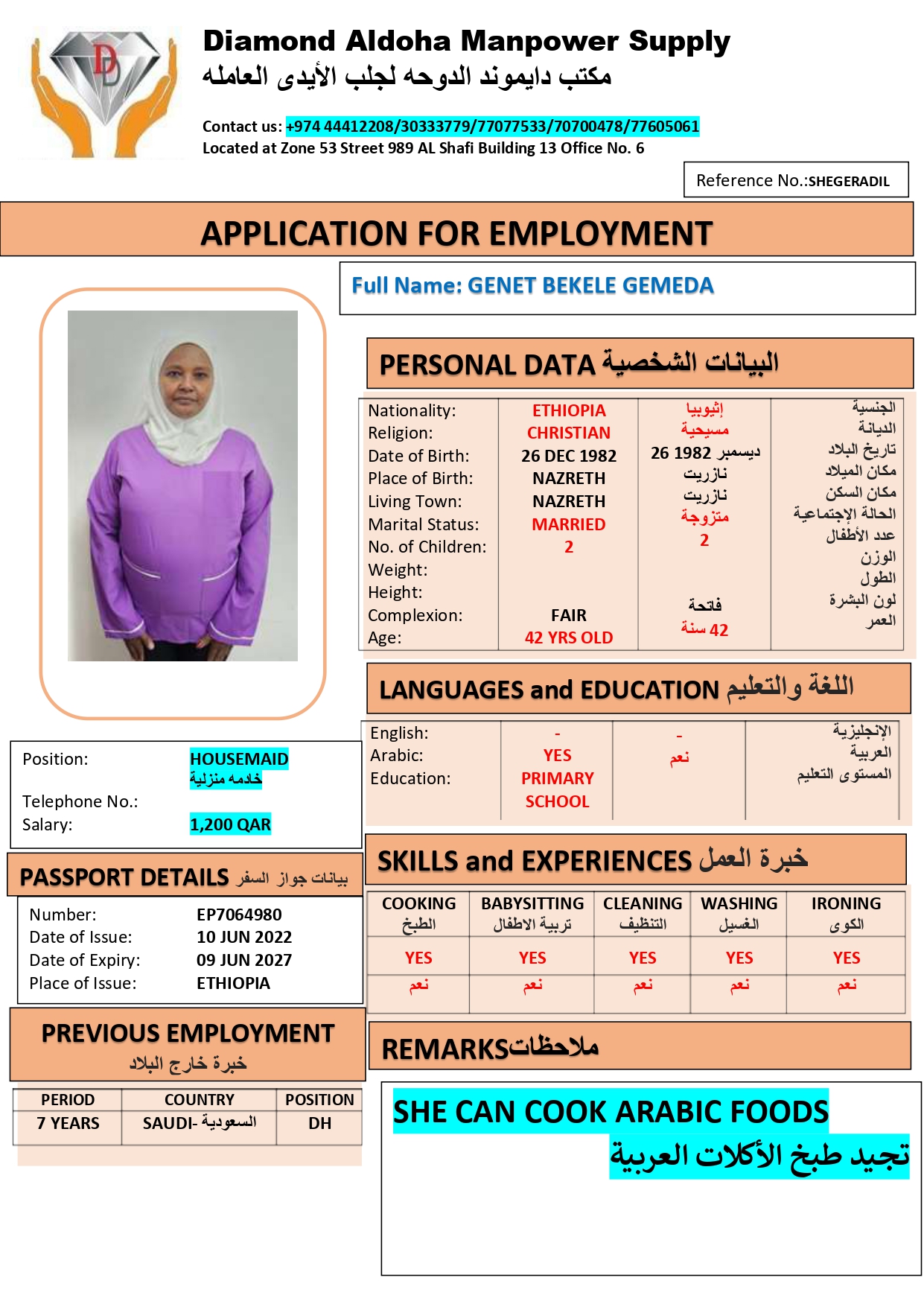 GENET GEMEDA Domestic Worker – ETHIOPIA