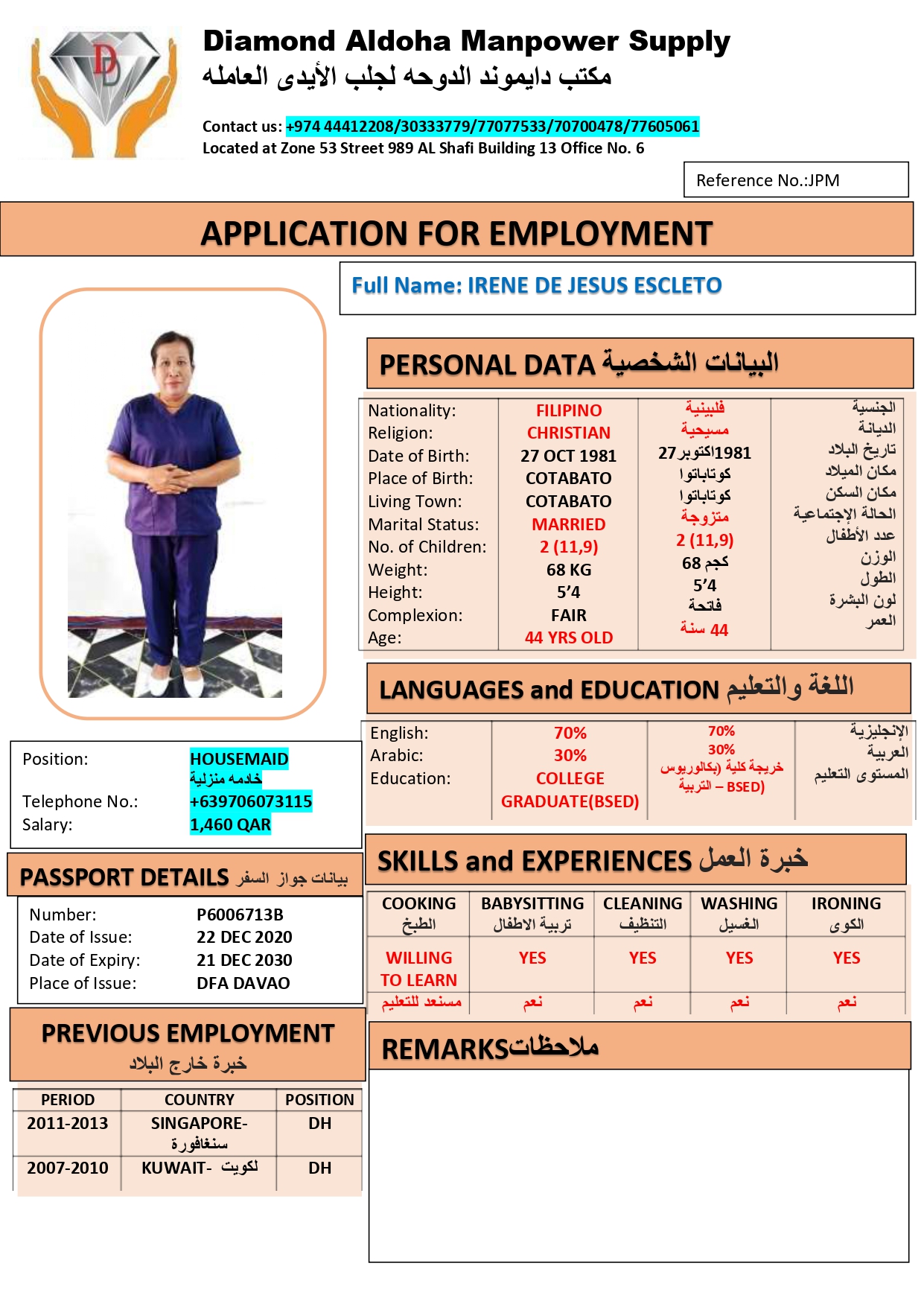 IRENE ESCLETO Domestic Worker – PHILIPPINES