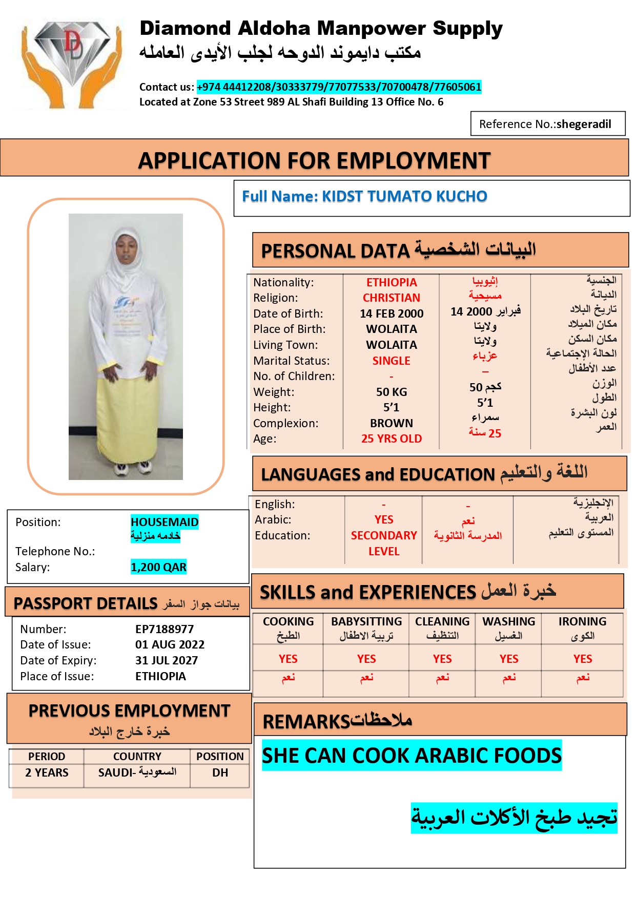 KIDST KUCHO Domestic Worker – ETHIOPIA
