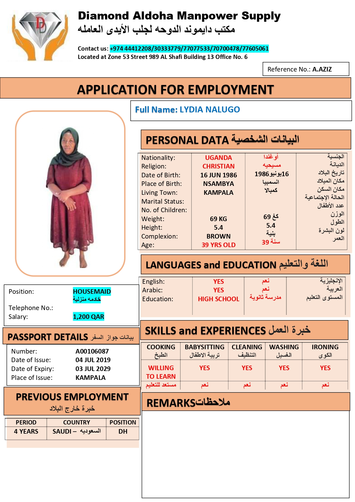 LYDIA NALUGO Domestic Worker – UGANDA