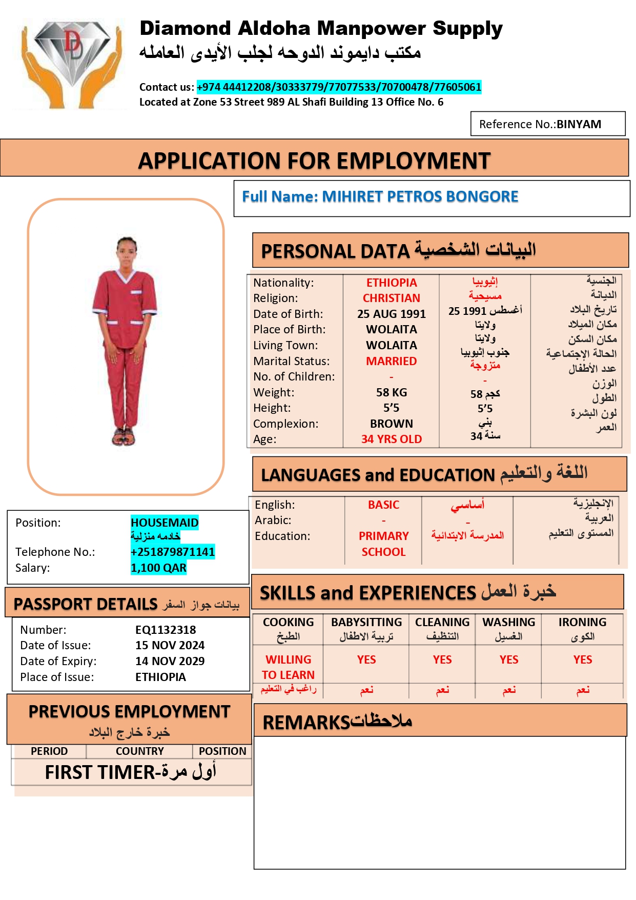 MIHIRET BONGOREDomestic worker – Ethiopia