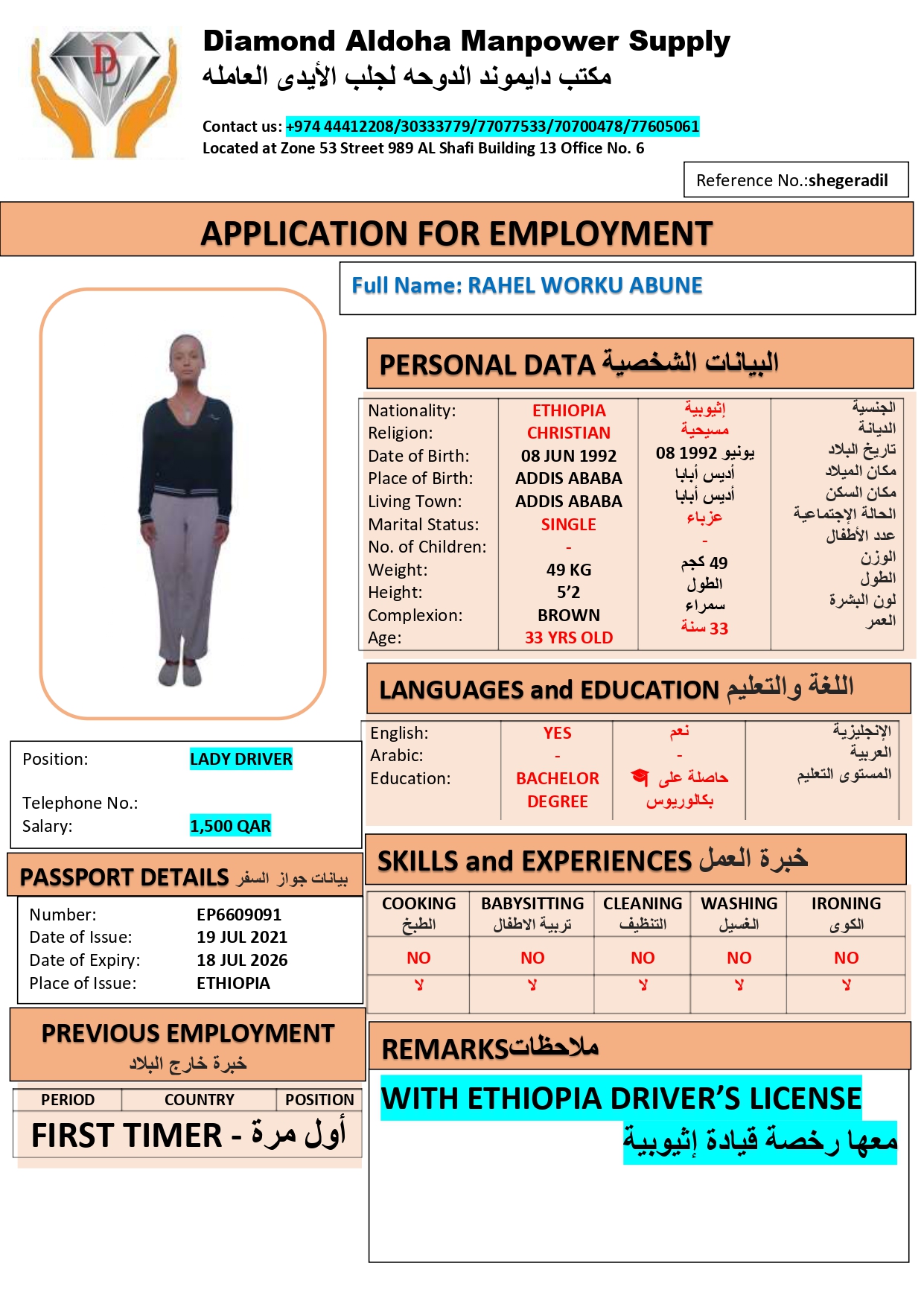 RAHEL ABUNE DRIVER- ETHIOPIA