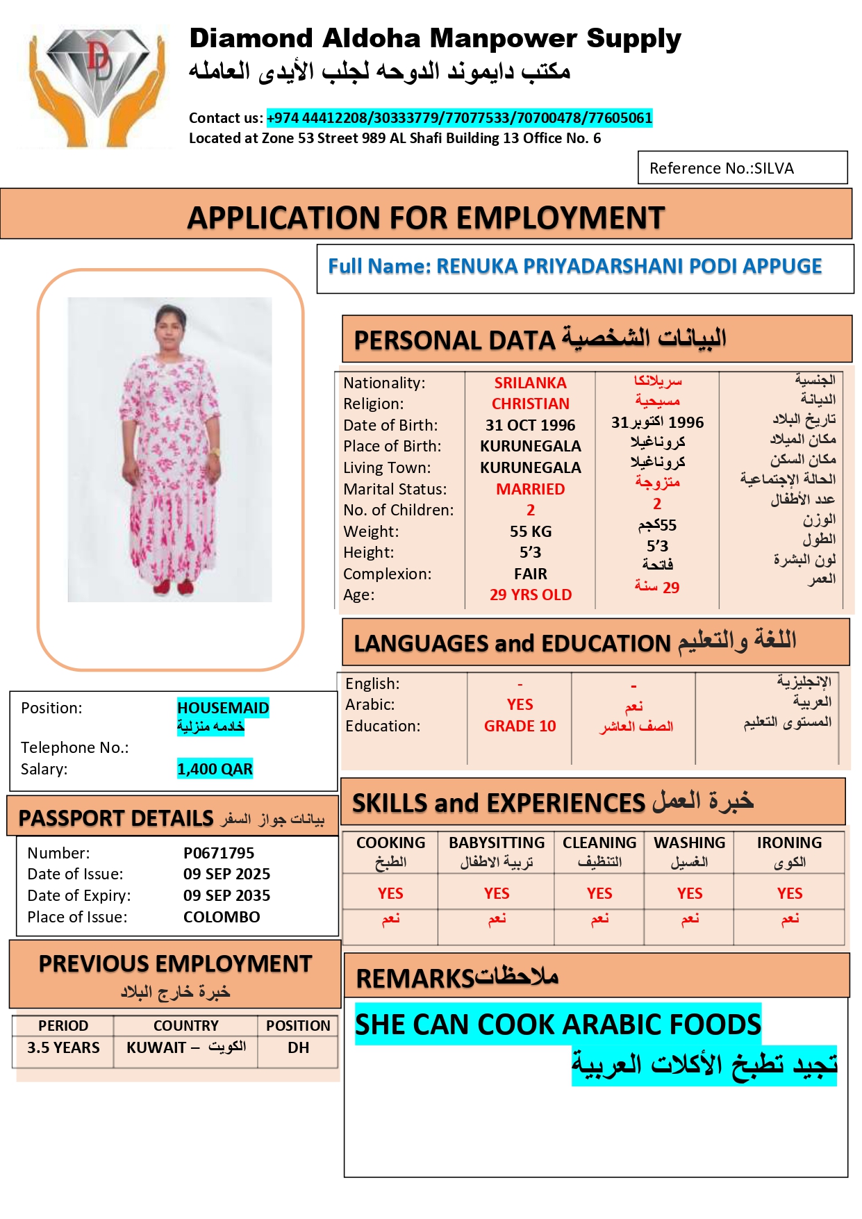 / RENUKA APPUGE Domestic Worker – SRILANKA