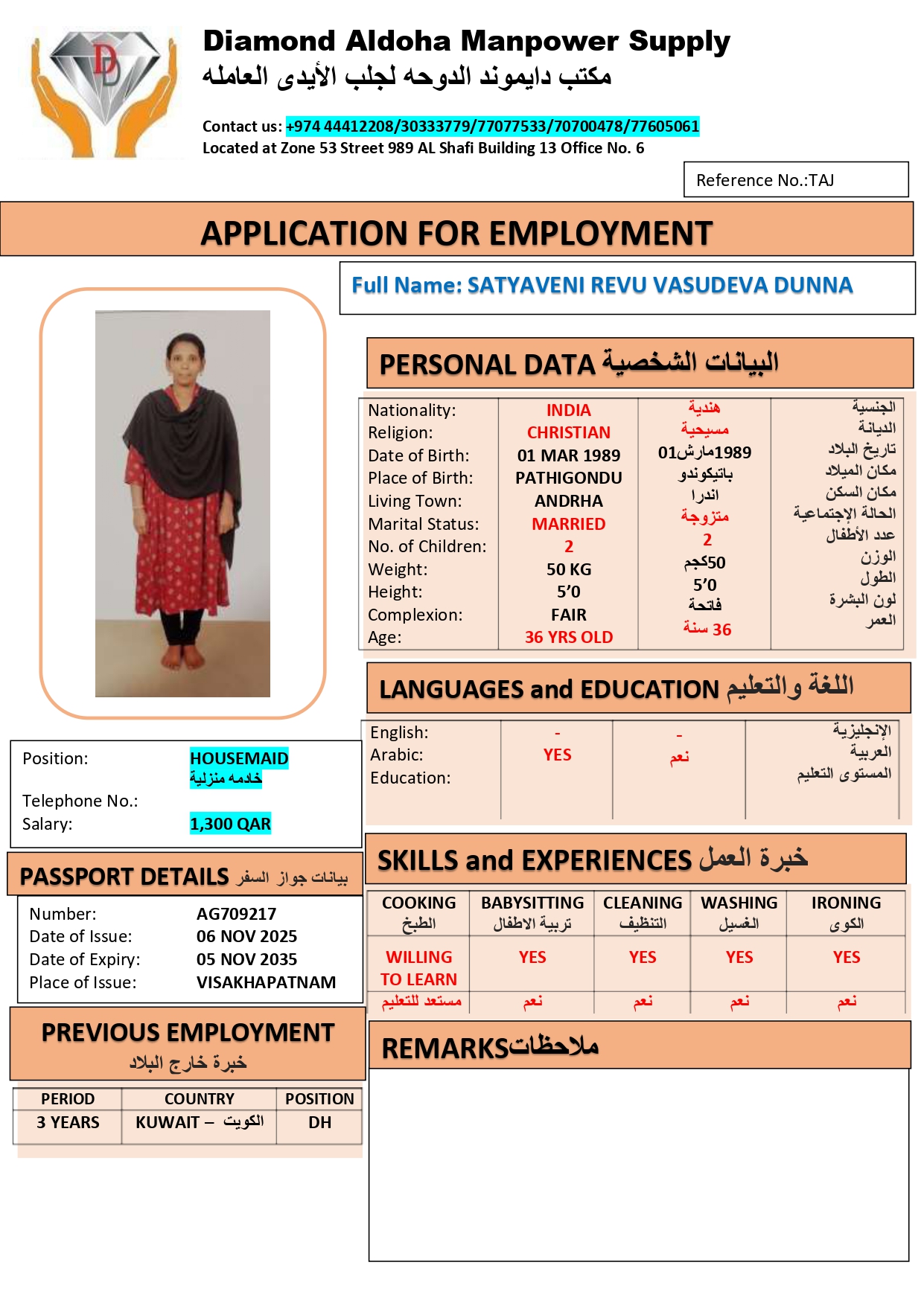 Name – English SATYAVENI REVU DUNNA