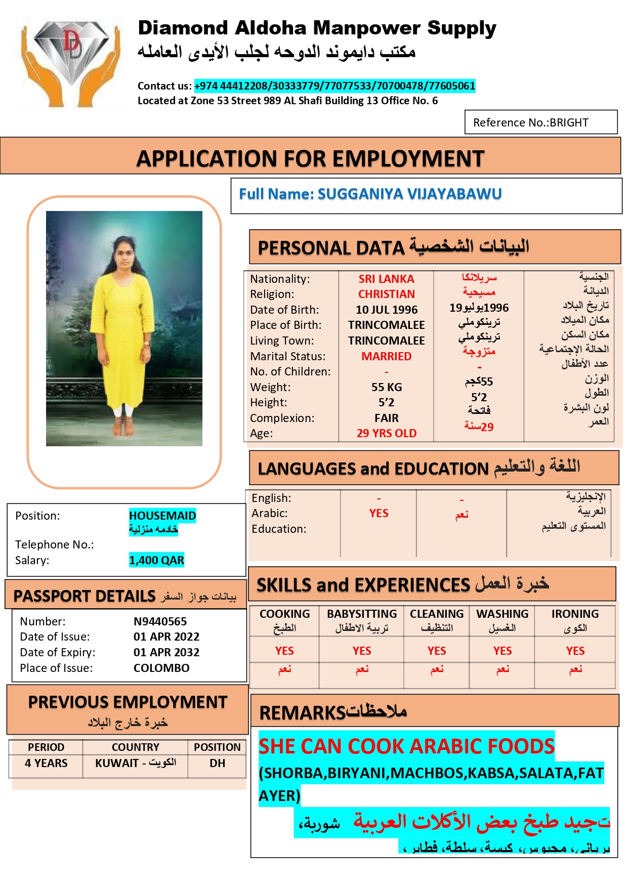 SUGGANIYA VIJAYABAWU Domestic Worker – SRI LANKA