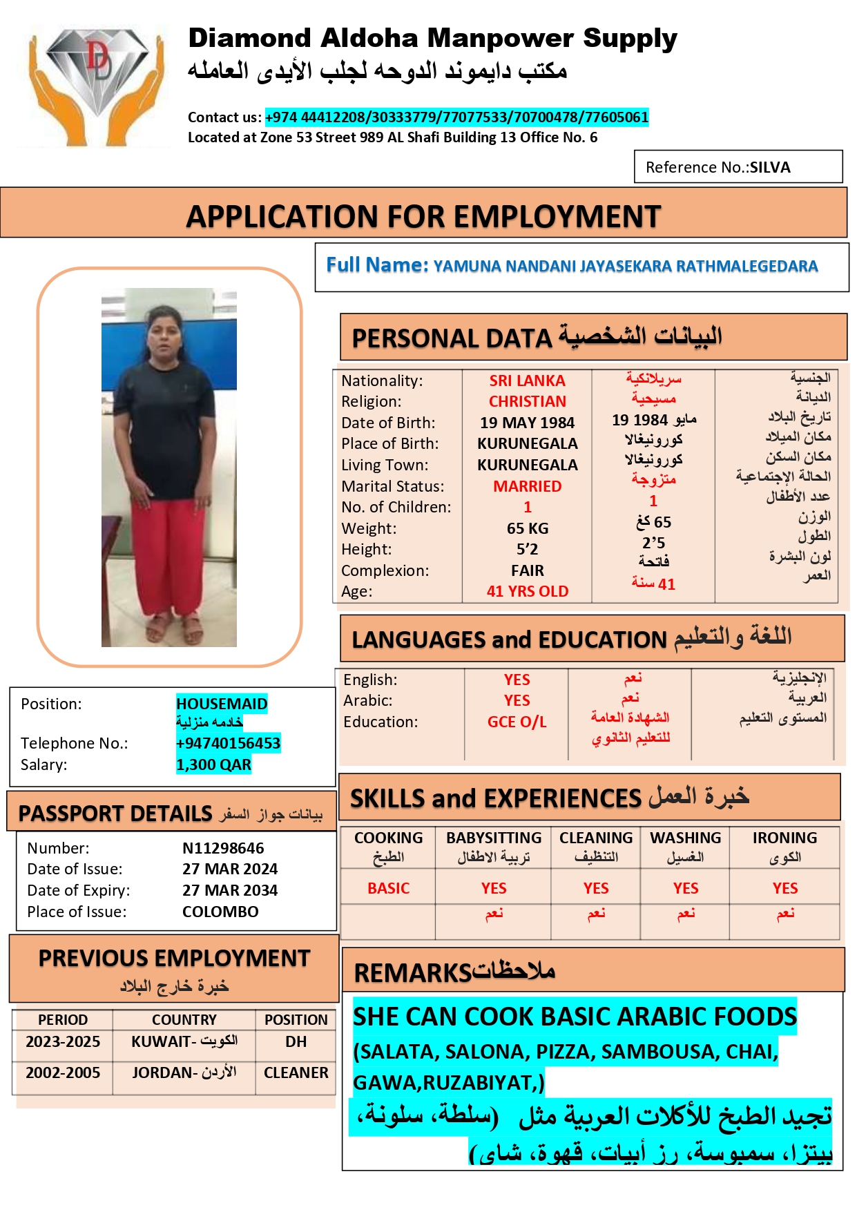 / YAMUNA RATHMALEGEDARA Domestic Worker – SRI LANKA