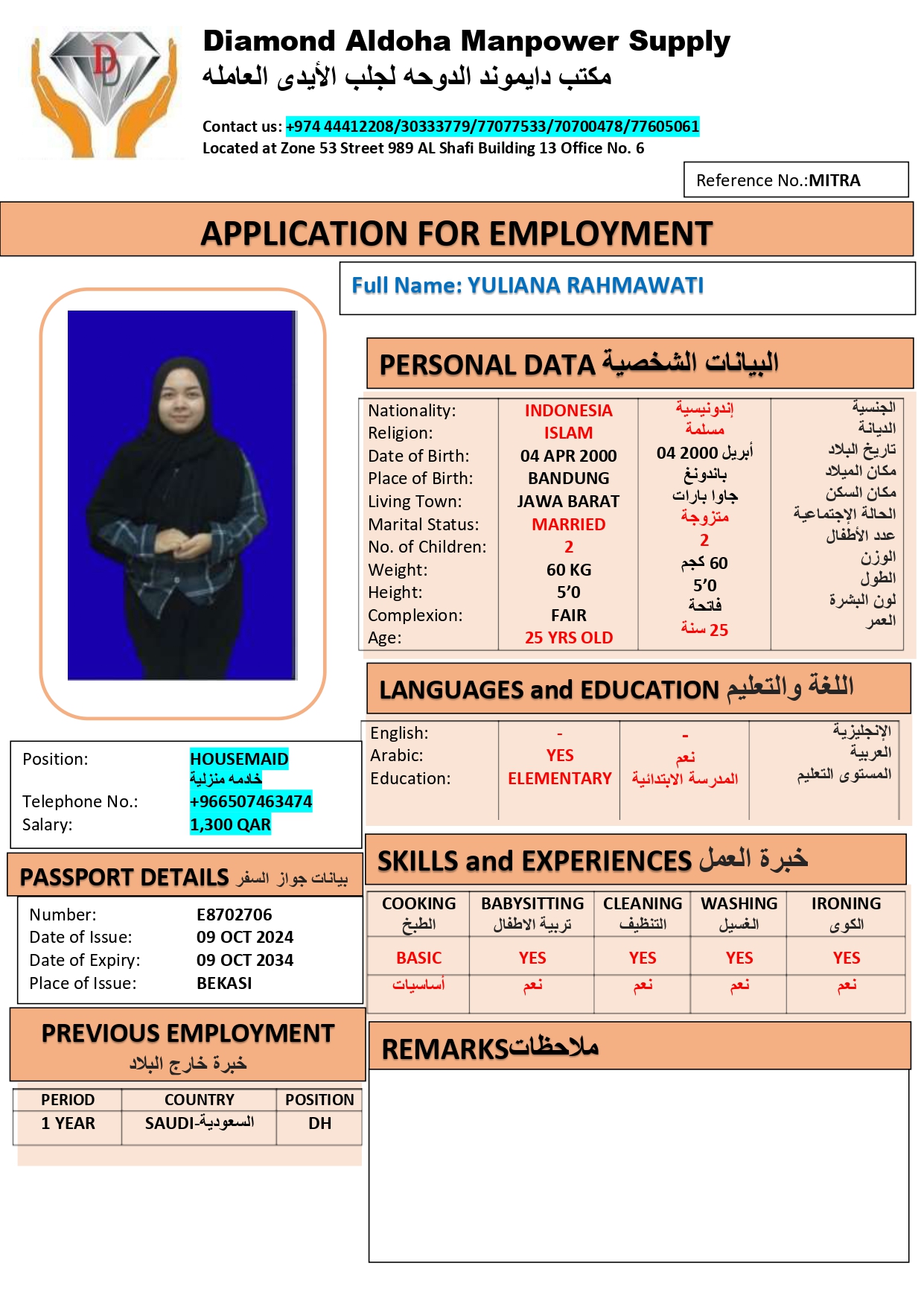 YULIANA RAHMAWATI Domestic Worker – INDONESIA
